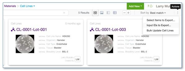 With the beta feature enabled, users may now export records from a given Material Library using specific IDs. The option is accessed from the Actions menu.