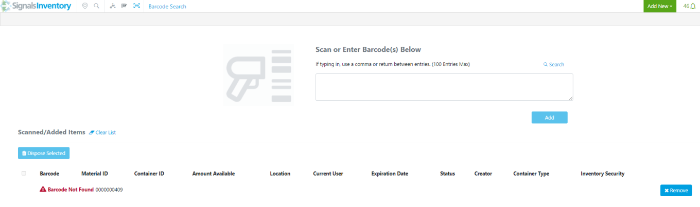 Asset and/or Batch/Lot IDs can be used to request specific records for a single Material type. The interface will support input of 100 records in copy paste with a return between each value. For larger requests up to a limit of 5000 records, user must utilize a properly formatted CSV or TXT file.