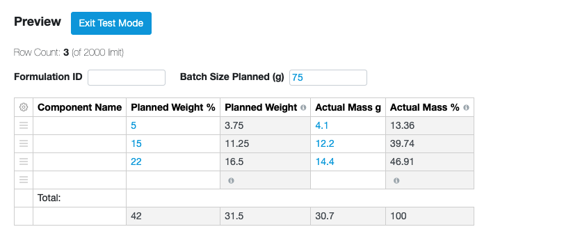 The administrator can now test out their calculations in admin defined tables prior to releasing the table templates to end users. The “Test In Out” button will launch an interactive table where the admin can enter representative data to verify the calculations are working as desired.