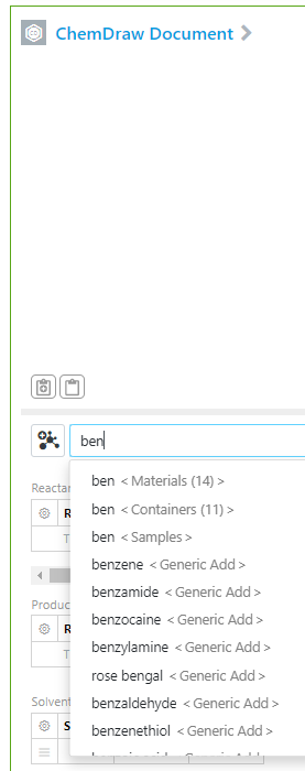 To use the PubChem features, users can create a new Reagent (SNB) with a valid CAS number or choose a currently existing Reagent (SNB):