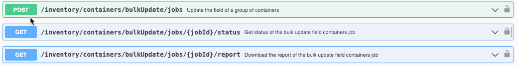 We have added new APIs to bulk update Responsible Person, Amount, and Expiration Date for Containers. This will update the selected field for all Containers included in the request body. Only one of these fields can be bulk updated at a time for all Containers.