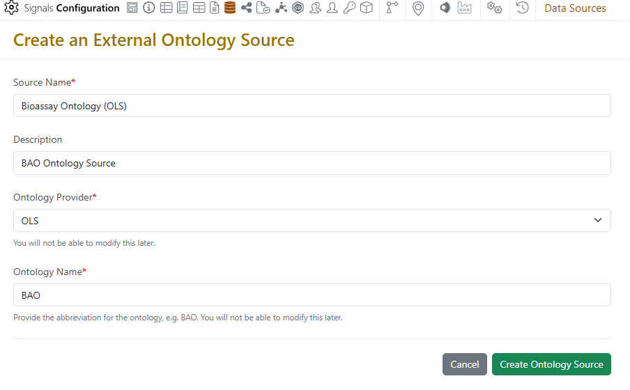 Ontologies are now supported in Signals. Administrators may connect to most public ontologies available on either the BioPortal or Ontology Lookup Service (OLS) providers.
