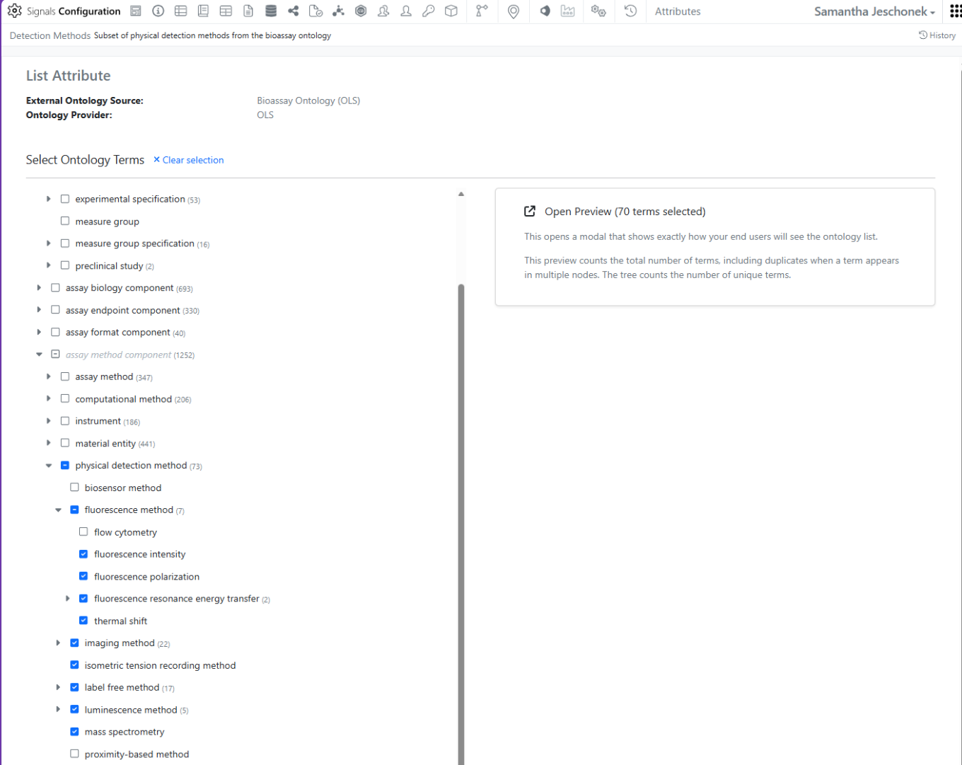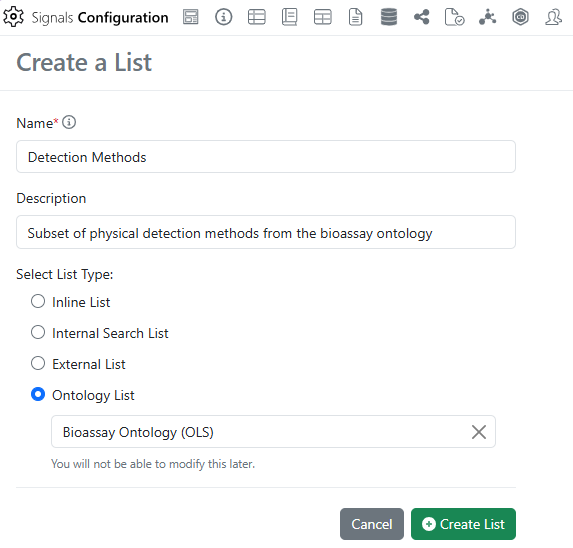 Admins can incorporate Ontology Lists into most Templates within Signals where Attribute Lists are already supported, including Material Definitions, Experiment Templates, Table Templates, Worksheet Templates, Sample Properties, and more