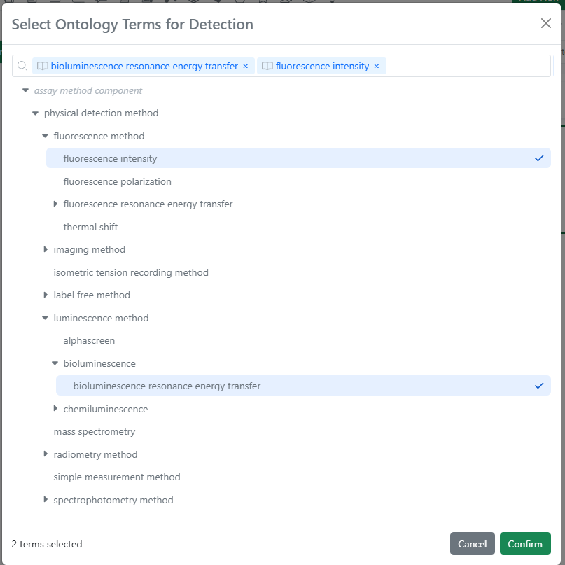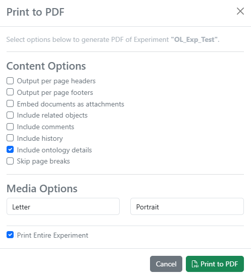 When printing Experiments or other objects to PDF, ontology details can be optionally included, which will embed a CSV with ontology metadata, like Preferred Name and IRI.