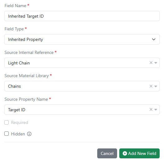 Administrators can now configure inherited properties in all material libraries. Data field values can now be passed down (i.e. inherited) from one material to another using internal reference links. Updates to the source data are automatically propagated to any inheriting entity and are kept in sync.